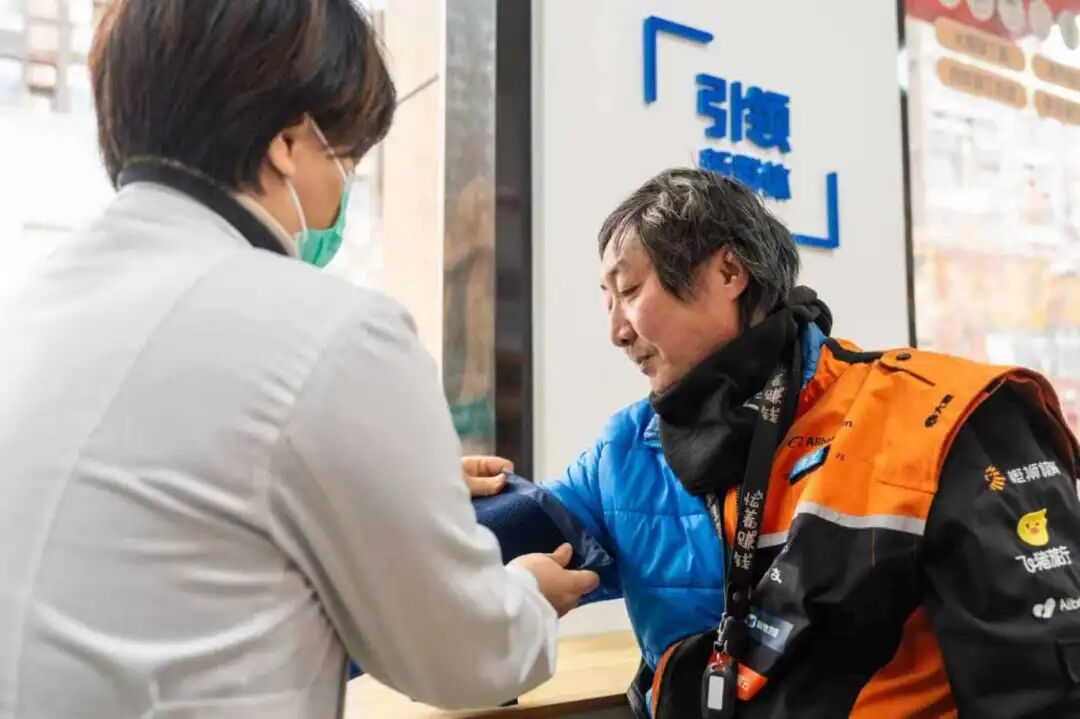 昆山高新區(qū)黨工委在招商花園城暖“新”驛站等新就業(yè)服務(wù)站點內(nèi)安排黨員醫(yī)護(hù)志愿者坐診,針對騎手休息、飲食不規(guī)律等職業(yè)特點,為新就業(yè)群體提供免費血壓測量、健康咨詢等服務(wù),提供科學(xué)作息、合理膳食等健康指導(dǎo)。