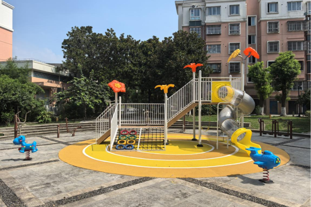 新建一方游樂場(chǎng) 點(diǎn)亮童年笑顏 花家浜新村居民多次反映,小區(qū)缺乏兒童活動(dòng)空間?;蛏鐓^(qū)將居民的這一訴求牢牢記在心上,在充分征求居民意見的基礎(chǔ)上,將小區(qū)的兩處公共空間精心打造成“樂齡稚子”休閑角。如今,色彩鮮亮的滑梯矗立其間,安全柔軟的地面呵護(hù)著奔跑的腳步。居民們欣慰地說:“現(xiàn)在孩子下樓就有地方玩,我們家長(zhǎng)也放心多了?!?/p>